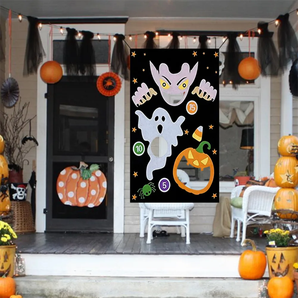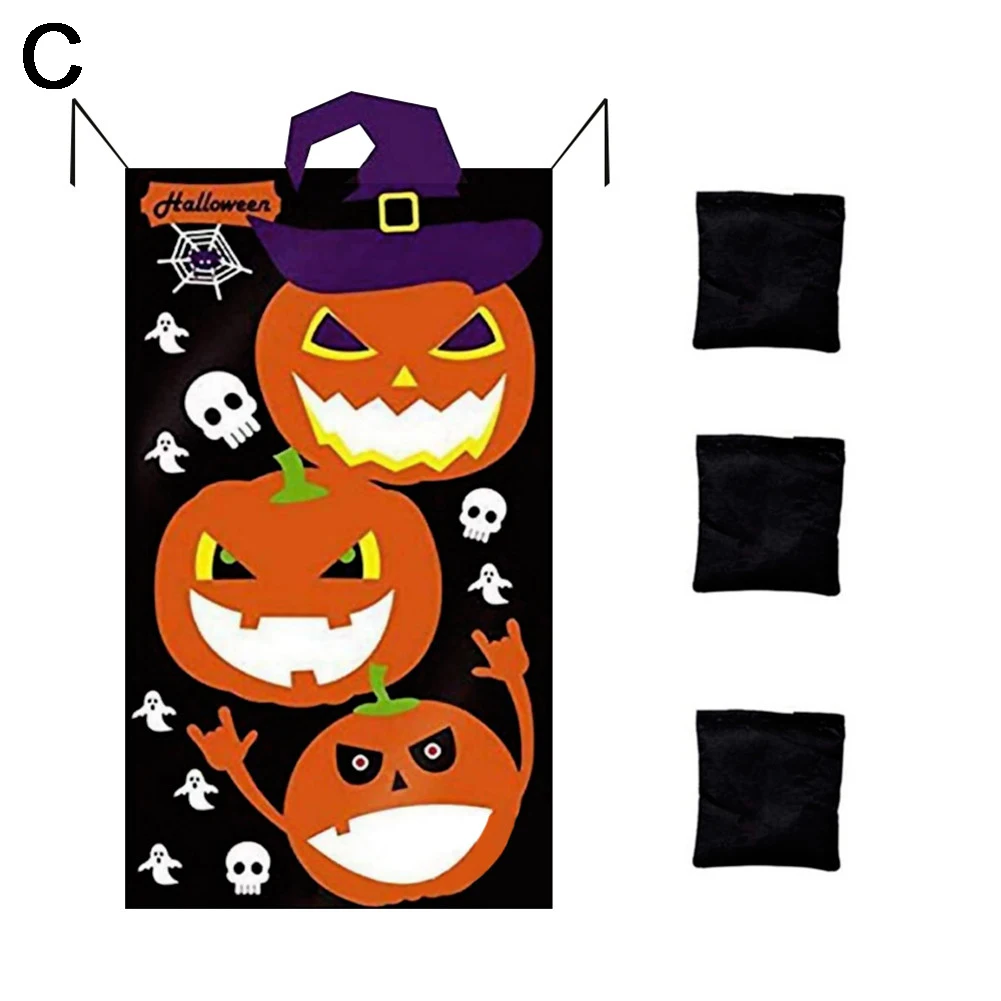 Вечерние баннеры для детей на Хэллоуин с изображением тыквы и Призрака с 3 мешками для бобов