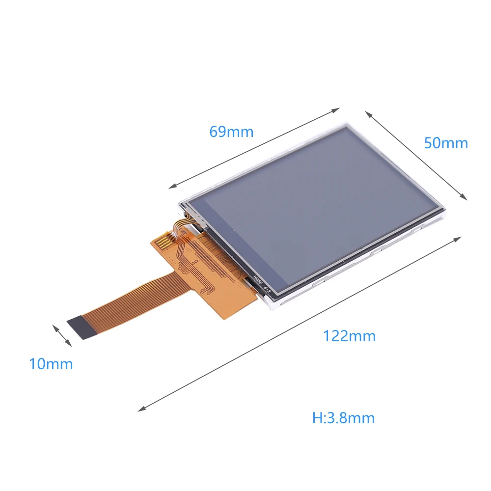1. Описание: Это 2,8 дюймовый сенсорный ЖК-экран 240*320 TFT. 2. Особенности: 1>. Сенсорный экран 2>.4Pin SPI связь 3>. Регулируемое направление отображения 4>. 12-часовой дисплей с углом обзора 3. Параметры: 1>. Название продукта: 2,8 дюймовый сенсорный ЖК-экран 240*320 TFT 2>. Материал: цветной ЖК-экран TFT 3>. Разрешение: 240*320 4>. Чип драйвера: ILI9341 5>. Размер дисплея: 2,8 дюйма 6>. Площадь дисплея: 43,2*57,6 мм 7>. Размер панели: 50*69,2*3,8 мм 8>. Тип интерфейса: 4-контактный SPI 9>. Рабочее напряжение: 2,8 В-3,3 В 10>. Штифты: 0,5 мм 18Pin 11>. Вид: 12 часов 12>. Рабочий ток: 60 мА 13>. Рабочая мощность: 0,22 Вт 14>. Тип подсветки: 4 шт LED 15>. Диапазон рабочих температур:-20 ℃ ~ 70 ℃ 16>. Диапазон рабочей влажности: 5%-95% RH 4. Определение контактов: 1>.Pin-1:GND.Power GND. 2>.Pin-2: сброс. Устройство сброса. 3>.Pin-3:SCL. pin-код часов. 4>.Pin-4:D/C. Данные и команда select pin. 5>.Pin-5:CSX. Микросхема select pin. Низкий уровень включается и высокий отключается. 6>.Pin-6:SDA. Ввод данных pin. 7>.Pin-7:SDO. Вывод данных. 8>.Pin-8:GND.Power GND. 9>.Pin-9:VDD. Рабочая мощность VCC. 10>.Pin-10:LEDA. Подсветка VCC. 11>.Pin-11: led1.подсветка GND. 12>.Pin-12: led2.подсветка GND. 13>.Pin-13: led3.подсветка GND. 14>.Pin-14: led4.подсветка GND. 15>.Pin-15:XL(X-). Логический контакт с сенсорной функцией. 16>.Pin-16:XU(Y-). Логический контакт с сенсорной функцией. 17>.Pin-17:XR(X +). Логический контакт с сенсорной функцией. 18>.Pin-18:XD(Y +). Логический контакт с сенсорной функцией. 5. Применение: 1>. Дисплей прибора 2>. Мобильные устройства 3>. Износостойкое устройство отображения 4>. Оборудование для мониторинга и отображения в реальном времени 6 посылка 1>.1 шт. 2,8 дюйма 240*320 TFT ЖК сенсорный экран