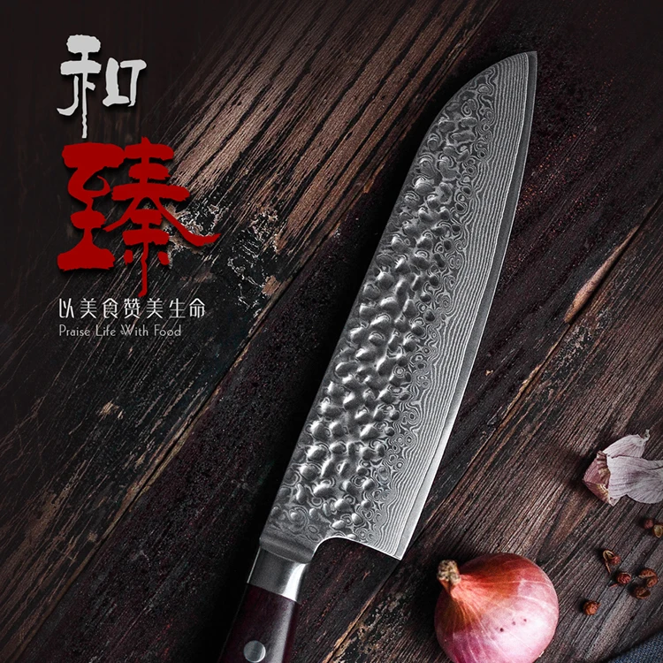 HezhenЭлегантный нож Santoku из дамасской стали