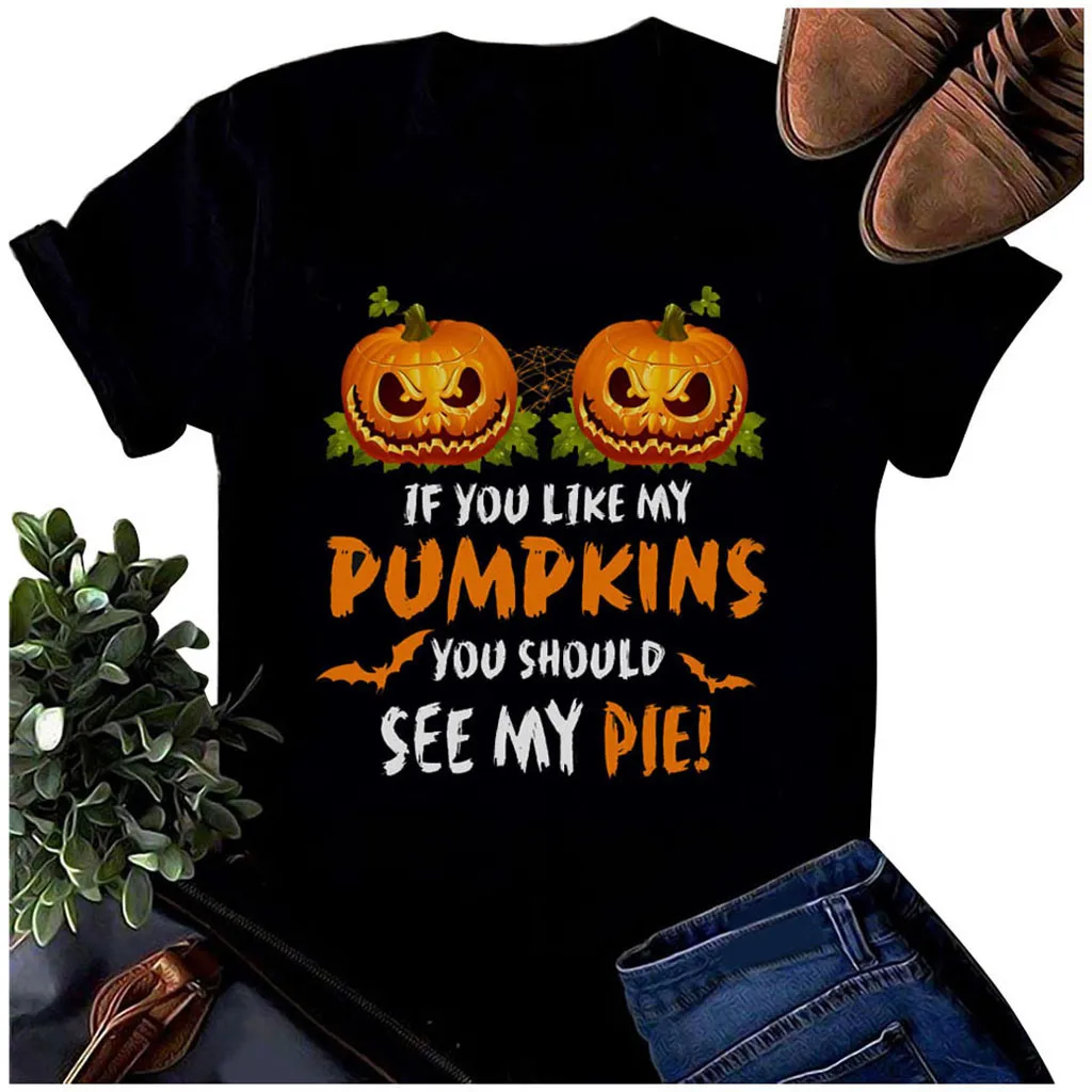 Женская футболка с круглым вырезом и буквенным принтом на Хэллоуин, Повседневная блуза с коротким рукавом, Топ