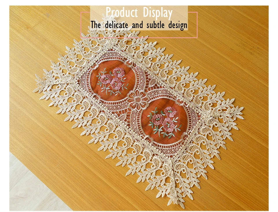 Основные характеристики этого продукта: -Смелый и креативный оригинальный дизайн -Изящная элегантность с шикарной современностью -Платье и защищает ваш стол/прикроватный шкаф/ТВ Стенд, также другие мебели -Идеально сочетается с другими предметами в вашем доме Параметры: -Основной материал: ткань вышитой органзы -Доступные размеры: 30х45см -Простота в уходе: ручная/машинная стирка О размере: из-за ручного измерения, пожалуйста, простите нас за погрешность в 1-3 см (+ or-), особенно изделия с кружевной каймой для шитья. О цвете: из-за того, что в светильник экране монитора фактический цвет, фактический цвет полученного товара может быть s светильник ly отличается из-за характеристик монитора компьютера. О качестве и наличии: мы являемся непосредственно производителем с 15 летним опытом экспорта, пожалуйста, не беспокойтесь о качестве.