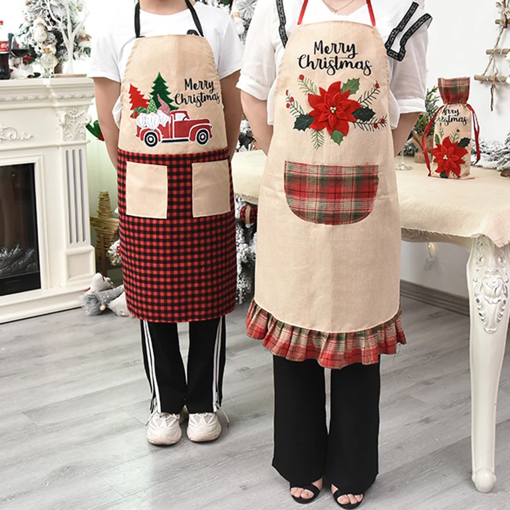 Изготовлен из высококачественного льна, новогодний фартук мягкий, прочный и легко чистится.