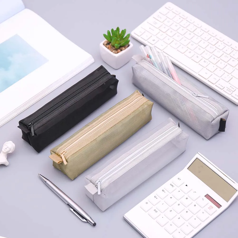 Чехол-карандаш унисекс простой однотонный на молнии прозрачный сетчатый чехол сумка для хранения ручек estojo escolar bolsinha de lapis