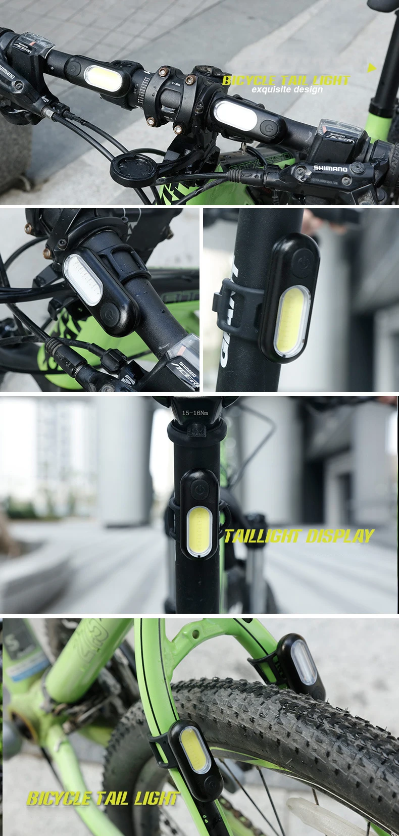 Цвет: красный, белый, красный, синий Режимы: 5 Источник: 12 светодиодных бусин Зарядка: USB / 1 час Посылка включает в себя: 1 * задний светильник