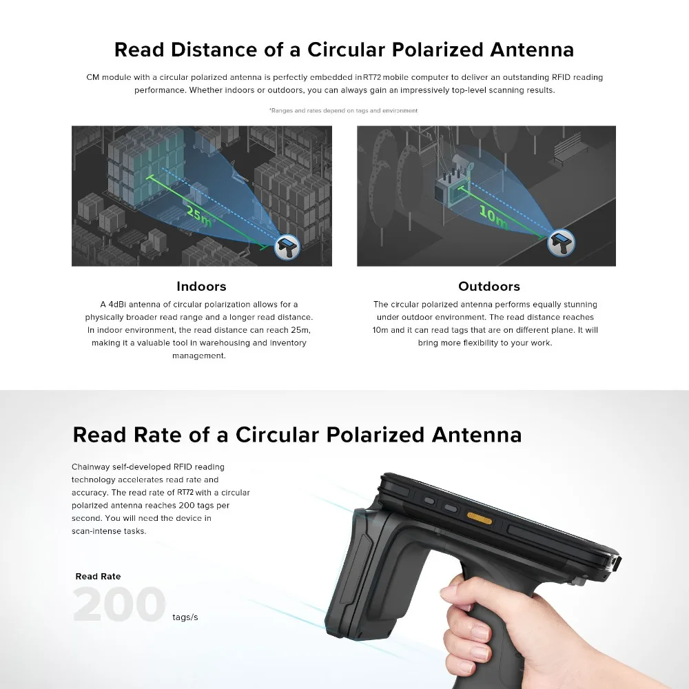 RT72 Rugline ручной UHF RFID считыватель с 1D и 2D сканер штрих-кода